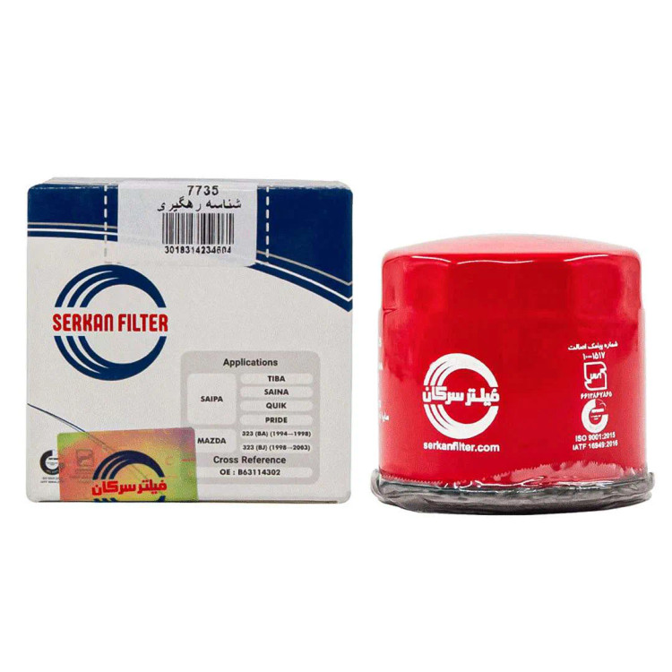 فیلتر روغن پراید با بدنه فلزی قرمز رنگ و بسیار با کیفیت توسط شرکت سرکان فیلتر ساخته میشود. مشخصات این فیلتر در زیر آمده است: